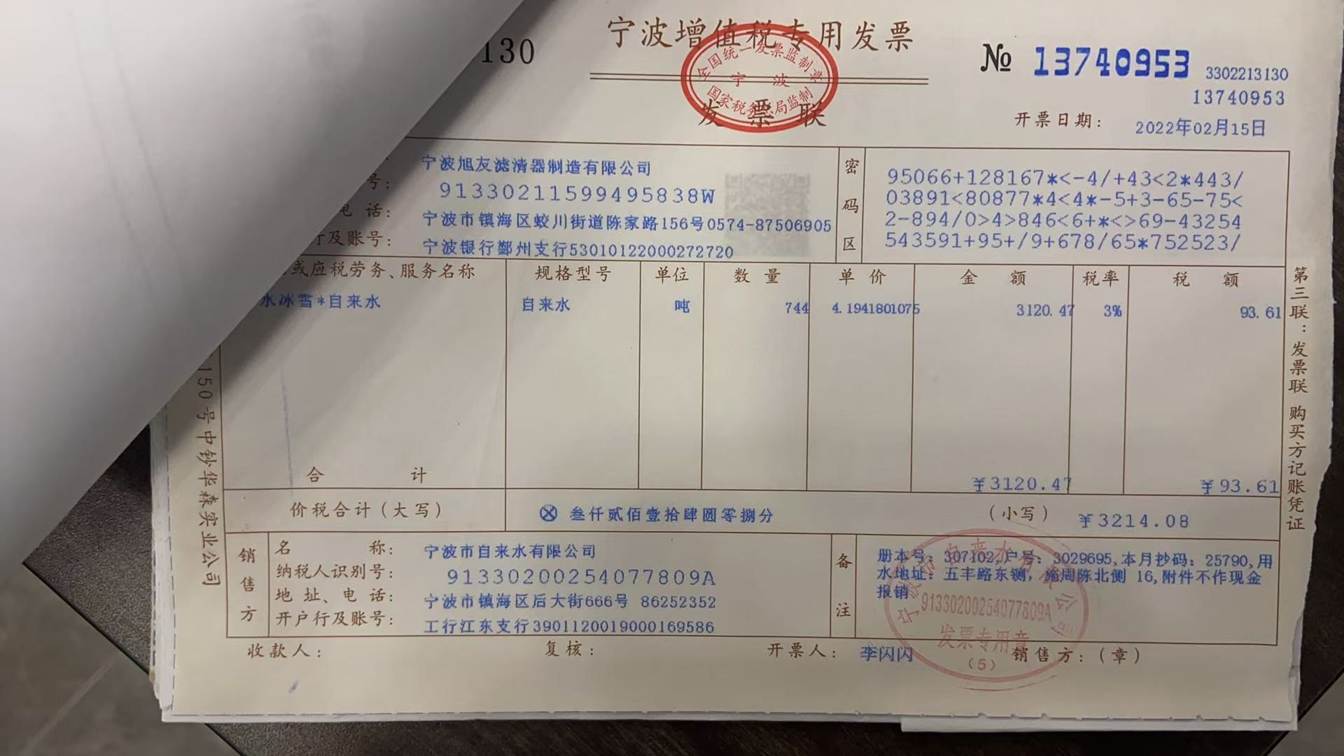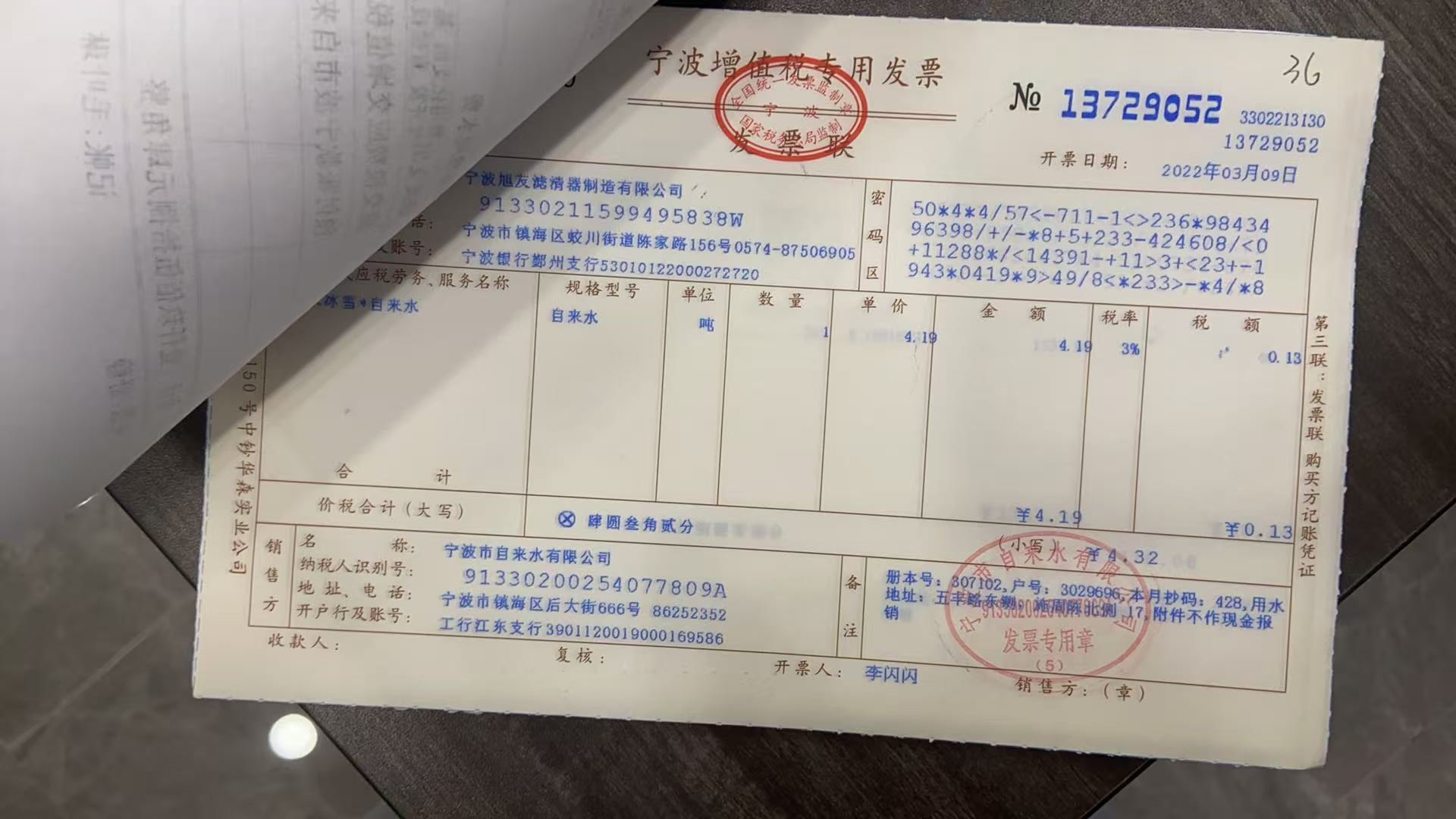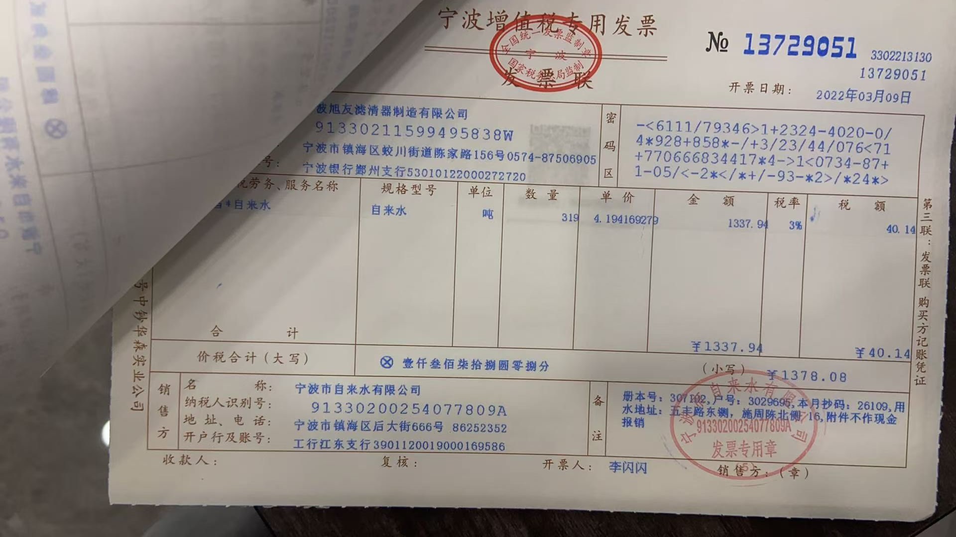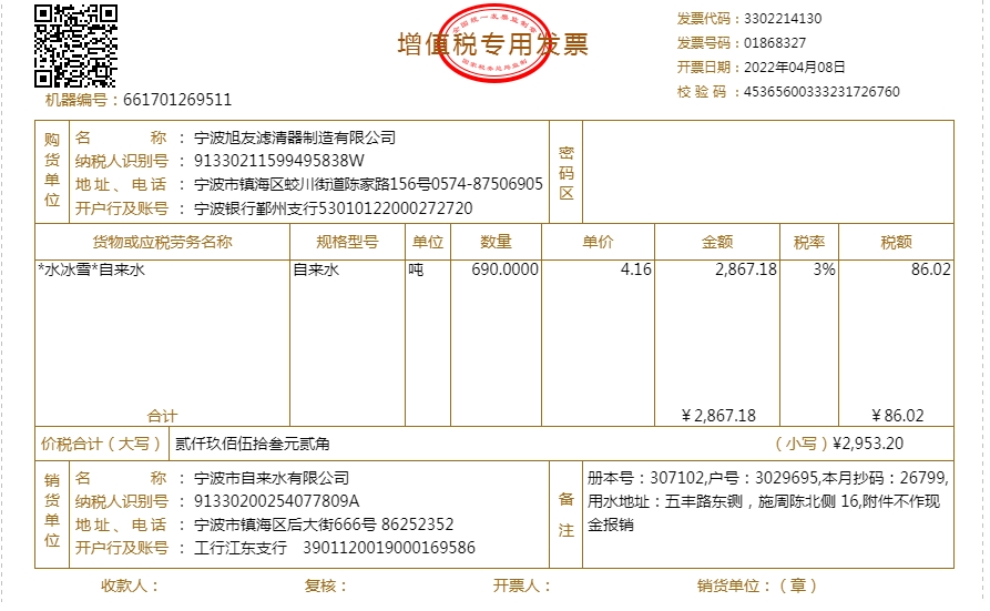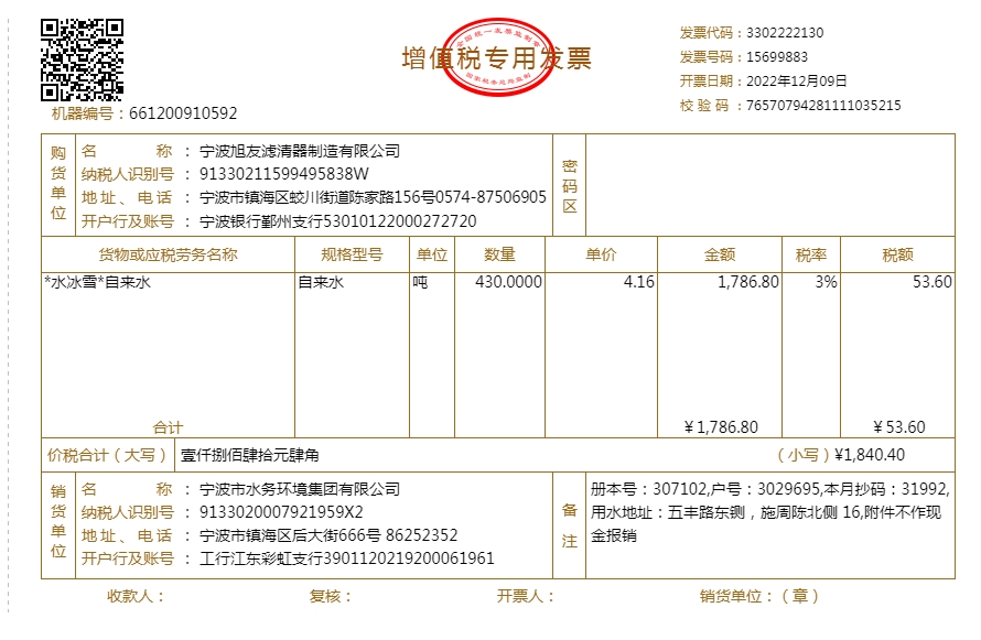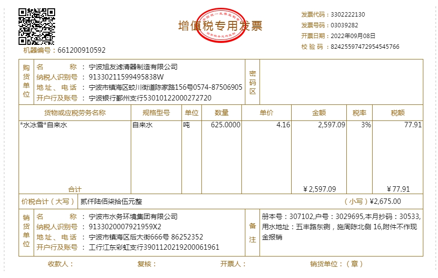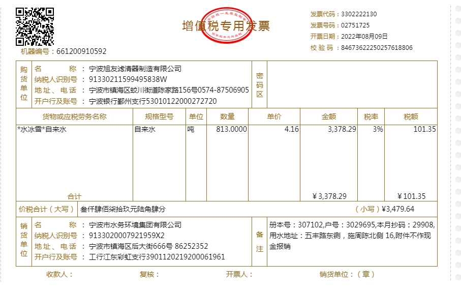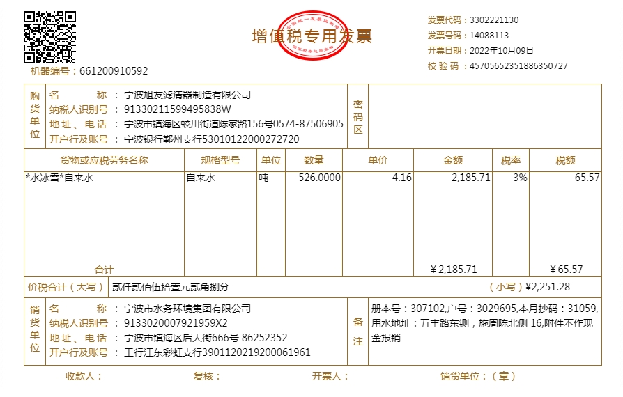 2022年水费发票